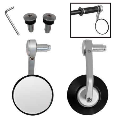 Coppia di specchietti retrovisori, per montaggio bar end, realizzati in alluminio in colorazione nero.