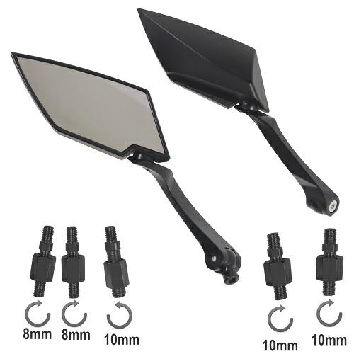 Coppia specchietti retrovisori realizzati in metallo e plastica, utilizzabili per manubri moto.